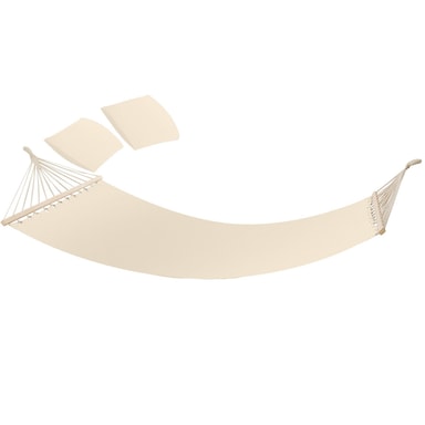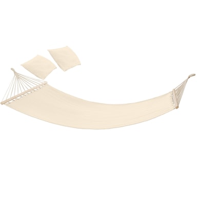 Vores hængekøje stativ er både robust og stabil, hvilket sikrer, at du kan nyde din hængekøje uden bekymringer. Den slidstærke liggeflade med stabil ophængning og de to bløde, aftagelige hovedpuder gør denne hængekøje til den ideelle løsning for dem, der søger komfort og kvalitet. Uanset om du foretrækker at ligge på langs eller diagonalt, er denne hængekøje designet til at imødekomme dine behov.