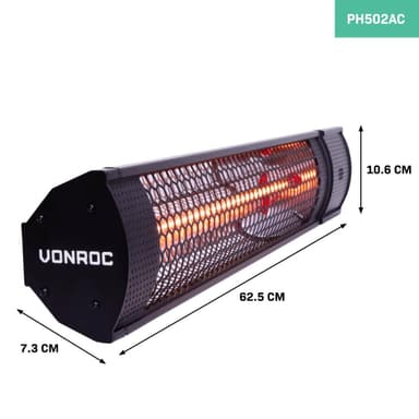 Nyd behagelige temperaturer på kølige dage og aftener med VONROC Marsili terrassevarmer. Denne elektriske patio heater på 2000W har en infrarød low-glare lampe, som giver masser af varme med minimal lysudstråling – perfekt til hyggelige stunder uden skarpt rødt lys.