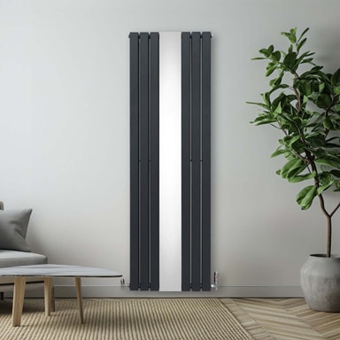 Infuser varme i dit hjem med vores banebrydende lodrette fladskærmsradiator i antracitgrå med et elegant centralt spejl - en perfekt blanding af tidløs elegance og moderne effektivitet.