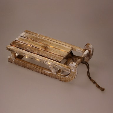 ECD Germany Dekorativ træslæde med 25 varmhvide LED'er, 31,5 x 14,5 x 10,5 cm