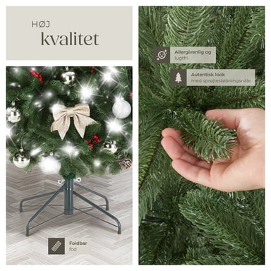 Du behøver ikke bekymre dig om nedfaldne nåle eller vanding, det kunstige juletræ forbliver altid i sin pragtfulde form. Fremstillet af særligt holdbare og højkvalitets materialer holder det blikfang i mange år. Det er dermed det ideelle valg for alle dem, der ikke ønsker besværet med et ægte træ.