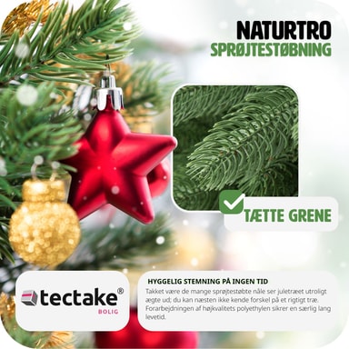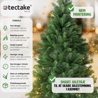 Jul - livets fest. Sørg for julestemningen med et kunstigt juletræ fra tectake. Det kunstige juletræ i plastik ser meget naturligt ud, og man kan næsten ikke se forskel på det flotte plastik juletræ og et ægte træ.Læs mere om produktet