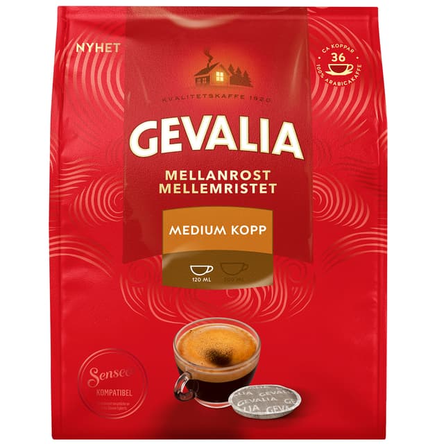 Gevalia mellem kapslerne 4041742 leverer kvalitetskaffe, der giver et skud energi om morgenen eller om eftermiddagen. Pakken indeholder 36 stk, der er kompatible med Senseo kaffemaskiner.