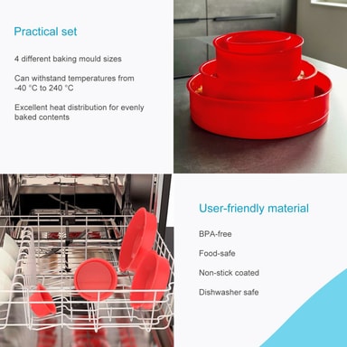 4x sæt bageforme silikone kageform (rød)