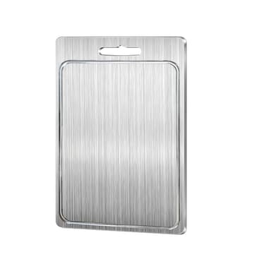 Opgrader dit køkken med dette dobbeltsidede skærebræt i rustfrit stål. Det er lavet af førsteklasses fødevaregodkendt 304 rustfrit stål, der sikrer en hygiejnisk og antibakteriel overflade til madlavning.Læs mere om produktet