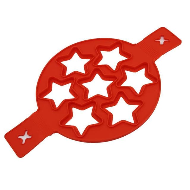 Praktisk æggekageform til 7 flotte stjerneformede pandekager, æggekage eller spejlæg. Silikoneformen er varmebestandig, og maden kommer let af. Pandekageformen passer i 26-28 cm store stegepander.