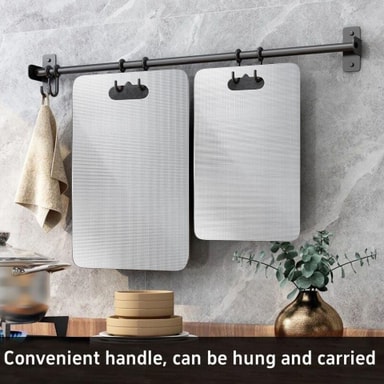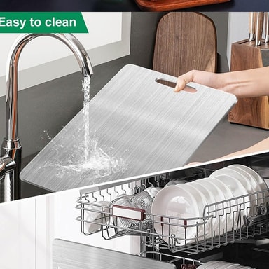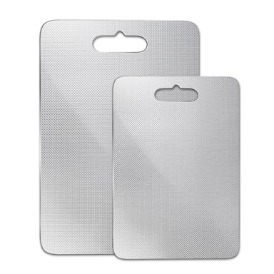 Ridsfast 304 skærebræt i rustfrit stål med risgrynstekstur. Antibakterielt og dobbeltsidet design til sikker og hygiejnisk madlavning. Perfekt til at hakke, skære og rulle dej.Læs mere om produktet