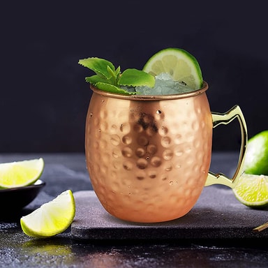 Stilfuldt og funktionelt: Dette cocktailglas har en smuk hamret kobberfinish, der tilføjer et strejf af raffinement til enhver baropsætning. Dets unikke design forbedrer drikkeoplevelsen og gør det perfekt til servering af en række cocktails.