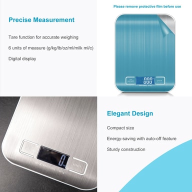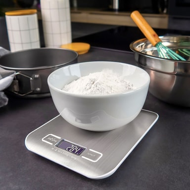 Med den digitale køkkenvægt kan du veje din mad hurtigt, præcist og nemt, når du laver mad.