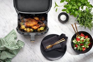 Kapacitet: Air fryeren har en stegekurv på 8 liter, som er perfekt til familiens måltider og til at lave store måltider.