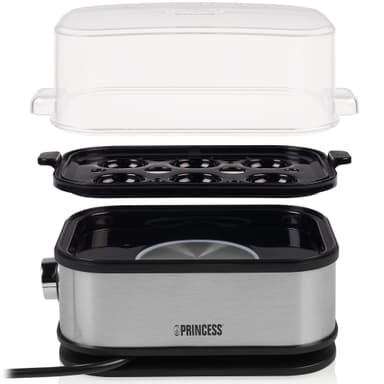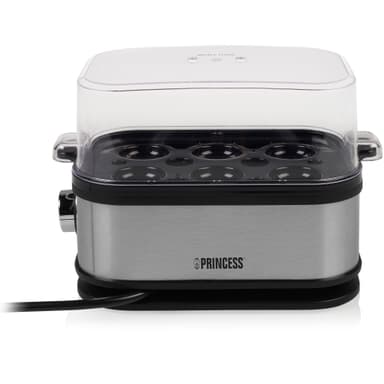 Koger op til 6 æg på samme tid. Med målebægeret kan du måle mængden af vand til hårdkogte, cremede eller blødkogte æg.