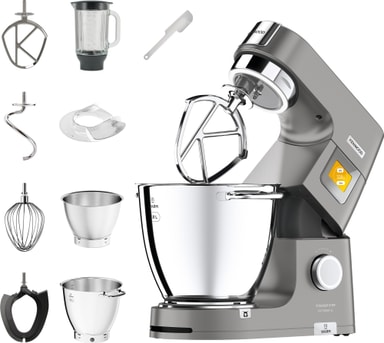 Denne Kenwood Chef XL Titanium Patissier køkkenmaskine KWL90.004SI er en multifunktionel køkkenhjælper, der har en 7 liters EasyWarm-skål, en ekstra 5-liters skål, BakeAssist touchskærm og en række SimpleTouch forudindstillede programmer.Læs mere om produktet