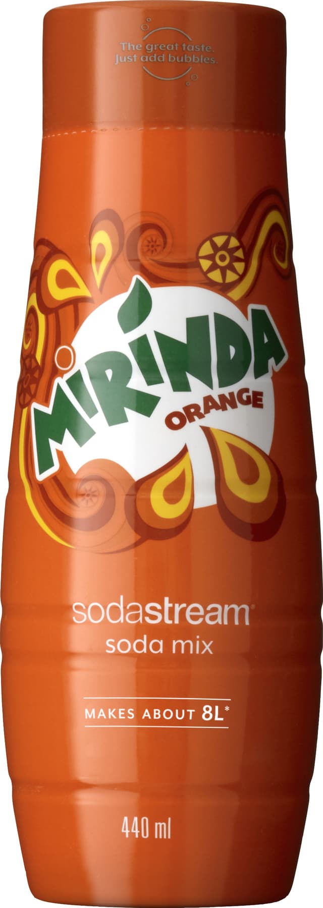 SodaStream smagsekstraktet MIR440DK er resultatet af et samarbejde mellem SodaStream og Pepsi. Pakken indeholder en 440 ml flaske med Mirinda-smag, der er nok til 8 l drik.