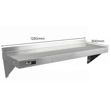 KuKoo Kommerciel Catering Korrosionsbestandig x 2 Rustfrit Stål Køkken Væg Hylde & Gratis Mikrofiber Klene 1250mm x 300mmLæs mere om produktet