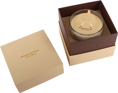 Det 350g A Home Whispering Pines duftlys A100042 bærer en forfriskende skovaroma med ædelgran og eukalyptus, lag på lag med myrra og safran, afrundet med patchouli, læder og oudtræ.Læs mere om produktet