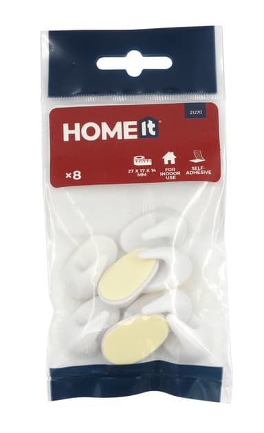 HOME It® selvklæbende krog i plast, 27×17 mm, 8 stk.