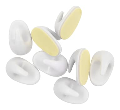 Selvklæbende kroge til montering på glatte flader. Højde: 27 mm Bredde: 17 mm Materiale: plast Farve: hvid Belastning: maks. 500 g Indhold: 8 stk.Læs mere om produktet