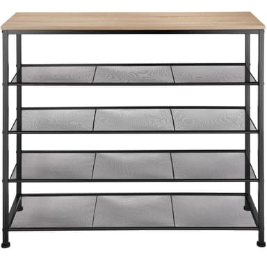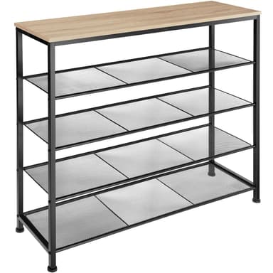 Den smalle Sheffield skoreol fra tectake byder på masser af plads på fire hylder og giver både funktionalitet og stil til din entré. Med et trendy industrielt design af træ og stål, kombineret med en konstruktion, der er nem at holde ren, er denne smarte skoreol ikke kun praktisk, men også visuelt tiltalende. Der er rigelig højde mellem hylderne, så sneakers, høje hæle og hjemmesko nemt kan opbevares og organiseres på de tre fintmaskede hylder.