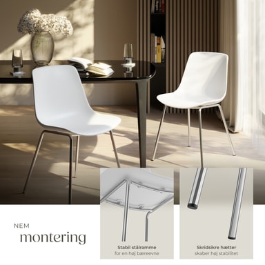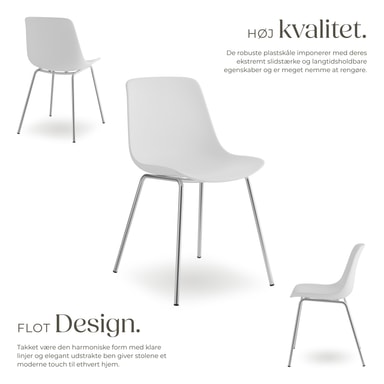 Det ergonomiske design af disse plaststole sikrer, at din ryg bliver optimalt aflastet – hvad enten det er ved en hyggelig middag eller et langt møde ved spisebordet, tilpasser det sig perfekt til din kropsform og giver dig maksimal komfort. De pulverlakerede stålstel sørger samtidig for førsteklasses stabilitet, så siddepladserne imponerer med en enorm høj belastningsevne.