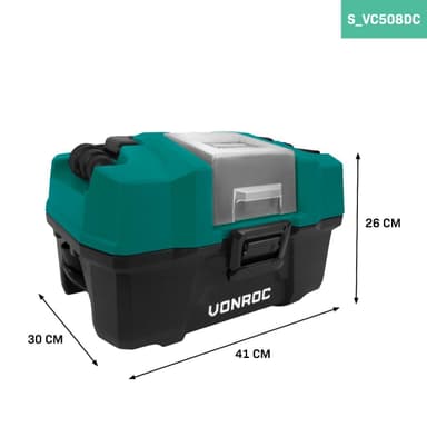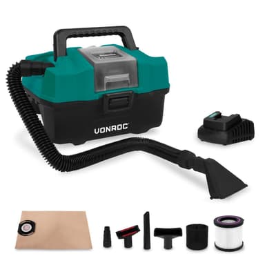 Denne kompakte universal støvsuger leveres med en akku og oplader, fordi den er en del af VONROC 20V Platform. Bestilling af udskiftelige 2,0Ah- eller 4,0Ah-batterier er valgfrit. Hvis du ønsker at kombinere støvsugeren med et andet produkt fra VONROC 20V-platformen, er et batteri og en hurtigoplader alt, hvad du behøver! Du skal blot vælge det du har brug for, til en konkurrencedygtig pris!
