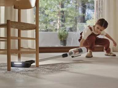 Denne kraftfulde og kompakte støvsuger, der blot vejer 1,35 kg i hånden, er designet til nem og fleksibel brug. Kom rundt i alle hjørner fra gulv til loft og brug hurtig udløsning af redskaber til nem overgang fra den ene opgave til den anden.