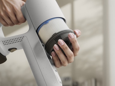 En holdbar, kraftfuld motor med multicyklonteknologi, der effektivt adskiller op til 98%** støv for optimeret ydeevne. Leverer en sugestyrke, der holder op til tre gange så længe og forbliver konstant, selv når støvbeholderen fyldes op, hvilket hjælper støvsugeren med at yde længere.