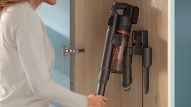 Philips håndholdte VC 7000 Series Aqua støvsuger har et elegant, velafbalanceret trådløst design, der er nemt at manøvrere rundt om møbler og snævre rum. Det digitale display holder dig informeret under rengøringen, mens vægophænget opbevarer og oplader støvsugeren pænt med tilbehør altid inden for rækkevidde.