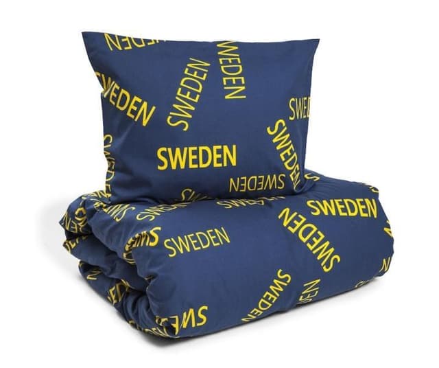 Lord Nelson, Sweden, BäddsetBäddset med texten ""SWEDEN"" skrivet över påslakan och örngott.Örngott 50x60cmPåslakan 150x210cm100% BomullFärg: Blå med gul textLæs mere om produktet