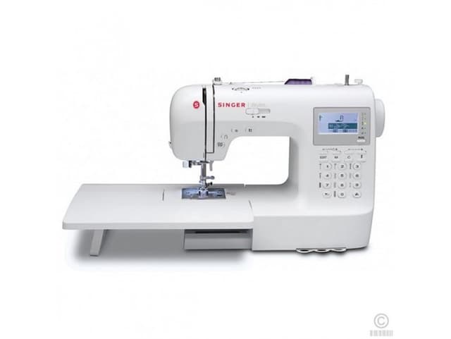 Singer Stylist 9100 m/stort sybrett er ein computermaskin med masse utstyr. Den har 404 sømmer inkludert 9 stk ett-trinn automatisk knapphull og 2 alfabet. Den har også 4 programmerbare saumar, samt at den kan speglvende og forlenge saumar. Maskina er enkel og oversiktlig knappar for sømvalg, LCD display, sterkt ledlys og enkle snap-on trykkføtter. Med ""Drop & Sew"" spolesystem og automatisk trådspenning og nålitreder er det enkelt å komme igang med å sy. Stylist 9100 har 13 nålposisjoner og trinnløst hastighetskontroll. Maskina både festar og klyppar automatisk tråden og har start/stopp knapp slik at ein kan sy utan fotpedal samtidig som den har valfri nålstopp oppe eller nede. Det er automatisk justerbart trykkfottrykk og justerbar stinglengde opptil 4,5mm og bredde opptil 7mm. Syr opptil 750 sting per minutt og maskina har nedsenkbar transportør. Maskina varsler selv dersom den oppdager feil. Utstyr: Norsk instruksjonsbok (pdf) Følger med stort sybrett, diverse syføtter (12), synåler, sybrett, undertrådspoler, overtransportør, quiltelinjal, trådsnellestopper(stor og liten), sprettekniv, skrutrekker og eit beskyttende mjukt vinyltrekk. m.m.