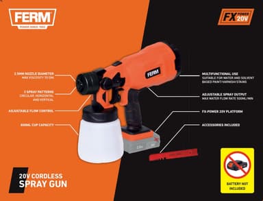 FERM SGM1018 Sprøjtepistol 20V | 800ml | 3 sprøjemønstre | Solo | Ekskl. akku og lader