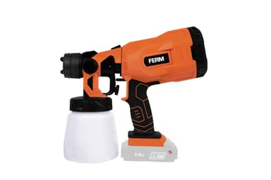 ProduktbeskrivelseFERM SGM1018 er en trådløs sprøjtepistol til 20V batterier fra FERM AX- og FX-Power platformene. Den er ideel til maling, lak, bejdse og grunding – både på vand- og opløsningsmiddelbasis.Læs mere om produktet