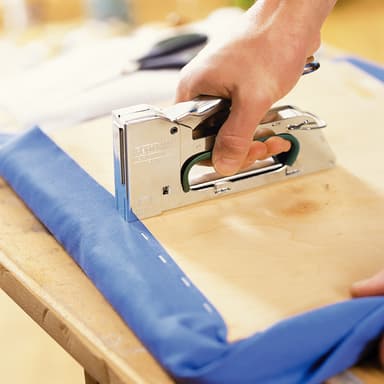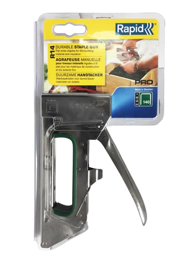 Hæfteklammetype: 140. Benlængde: 6-8 mm. Mål: 39 x 105 x 285 mm. Materiale: Stål. Rekylfri, låsefunktion, støjdæmper. Velegnet til fæstning af tynde materialer, som f.eks. plast og tyndt pap, der kun kræver korte klammer Anvendelse: isolering.Læs mere om produktet