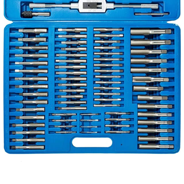 Omfattende gevindskæresæt fra tectake med 110 praktiske dele til at skære gevind. Den præcise fremstilling muliggør et resultat i høj kvalitet. Med det store udvalg er du fuldstændig optimalt forberedt i forhold til et hvilket som helst stykke arbejde. Det komplette sæt leveres i en praktisk kuffert, der skaber orden i delene. Bestil det praktiske gevindskæresæt fra tectake allerede i dag.