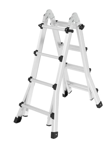 Skydestige/wienerstige i aluminium med teleskopfunktion, så den også kan bruges på trapper. Den nederste del på wienerstigens to sider breder sig ud, så stigen står mere stabilt. Godkendt iht. EN131. Mål som skydestige/wienerstige: H404/130-220×B61Læs mere om produktet