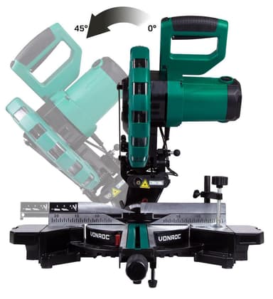VONROC MS502AC er en kraftfuld og præcis radial geringssav med en effekt på hele 2200W og en savklinge på Ø254 mm med 60 tænder. Den er udstyret med laser og LED-arbejdslys, hvilket sikrer nøjagtige snit – selv under dårlige lysforhold. Den bløde opstart beskytter dine sikringer og giver en sikker start hver gang.
