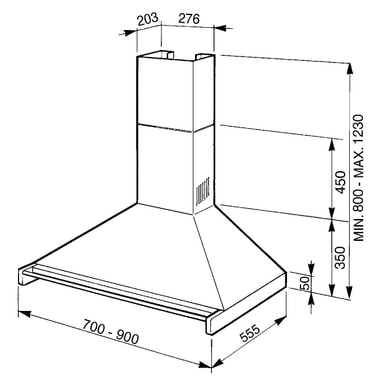 • 90 cm vægmonteret emhætte