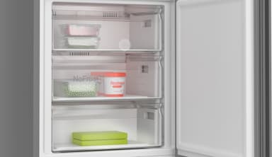 *Brugen af CO₂-reduceret stål (særligt forarbejdet stål), skum og plast i produktionen af specifikke Bosch-køleskabe (standardstørrelse: KGN39VXAT, XL-størrelse: KGN492IAF) er verificeret gennem massebalanceringsberegninger i overensstemmelse med ISO 22095. Under fremstillingen blandes disse materialer delvist med konventionelle materialer, men deres certificerede egenskaber tildeles Bosch-køleskabene via denne metode. Materialernes egenskaber (ekskl. emballage) vurderes i henhold til ISO 14067.