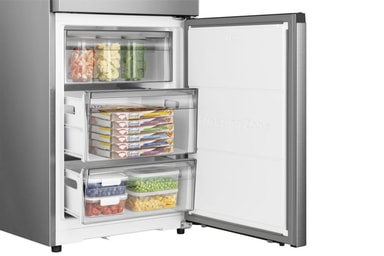 Den nederste del af fryseren har frosne varer inden for rækkevidde. Dybe udtræksskuffer gør det nemt at organisere indholdet uden at skulle bukke sig ned eller grave sig gennem stablede varer, uanset om det er frosne bær, brød eller rester.