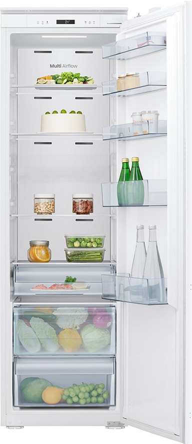 Multi Air Flow-teknologien sikrer jævn køling i hele apparatet. Den cirkulerer luft gennem flere ventilationsåbninger på hvert hyldeniveau.
