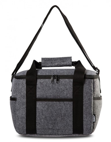 Denna kylväska är tillverkad i grått filttyg utav 100% R-PET. Väskan är utrustad med flera praktiska fack på utsidan för förvaring av lättåtkomliga föremål. Väskans ovandel försluts med dragkedja och väskan är rymlig för en dag utomhus.Læs mere om produktet