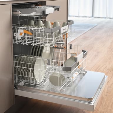 Mieles opvaskemaskiner tilbyder plads til op til 14 kuverter. Med vores kurve sørger vi for at opfylde dine ønsker og behov, såvel som standarden, så alt service ikke kun finder den optimale plads, men også er rent og tørt.Tørring Plus