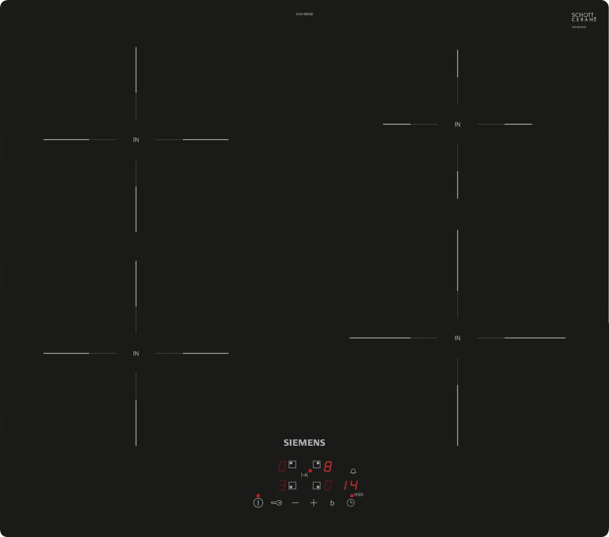 Siemens EH61RBEB6E Kogeplade tilbyder et slankt rammeløst design med 4 fleksible kogezoner, touchControl og powerBoost for effektiv måltidstilberedning.Læs mere om produktet