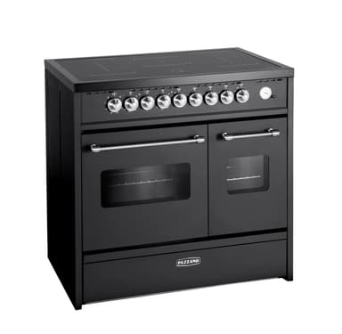 Pazzano - Cuore - Induktionskomfur 90 cm (2 ovne) (Sort/Børstet stål)Cuore-serien fra Pazzano er skabt til dig, der ønsker et komfur med personlighed – hvor italiensk designtradition forenes med høj ydeevne og gennemtænkte funktioner.Læs mere om produktet