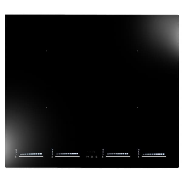 JGNordic induktionskogeplade 60 cm. Fingertouchbetjening med 4 zoner. Hvid display. Timerfunktion i alle zoner, flexzone på begge siderne, slider betjening på alle zoner, skjult display, intelligent gryderegistrering, grydeoptimerings funktion, 4 boost funktioner, restvarmeindikator, børnelås, overophetningsbeskyttelse. 7,2 kW. Zoner 19x21 cm. Størrelse 52 x 59 cm. Fasettkant foran og på siderne.