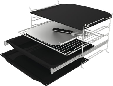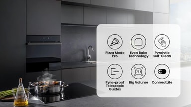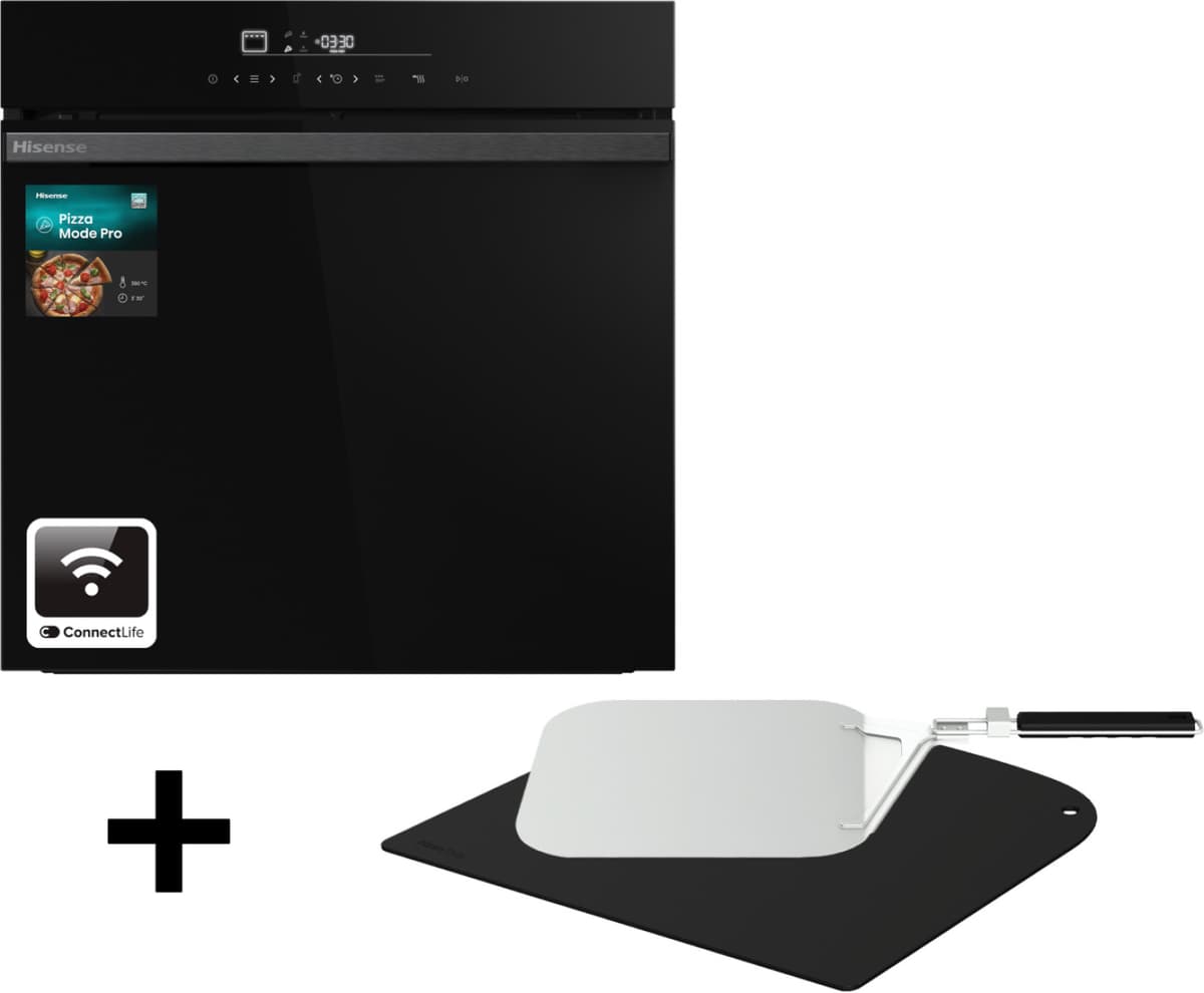 Hisense HO66F PizzaChef indbygningsovn har 77L kapacitet, elegant sort design, effektiv varmluft (0,71 kWh), pyrolytisk selvrens, automatiske programmer og pizzafunktion til nem gourmetmadlavning.Læs mere om produktet