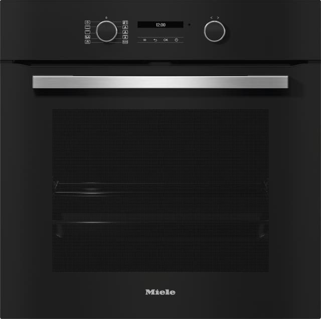 Miele ovnen har 7 madlavningsfunktioner med justerbar start, varighed og sluttid. Den omfatter programmer såsom pizzafunktion, varmluft, grill eller optøning.