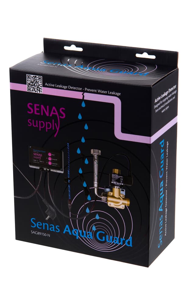 Hvert år skades tusindvis af boliger af vandlækage, men dette kan forhindres ved at montere Senas Aqua Guard, som er en automatisk lækagestopper med sensor. Monteres på vandindtaget på f.eks. vaskemaskinen, opvaskemaskinen, side-by-side, kaffemaskinen, eller andre produkter som er tilkoblet til vand. Senas Aqua Guard består af en magnetventil, fugtsensor, tilkoblingsslange og nødvendigt tilbehør for en nem og sikker montering.