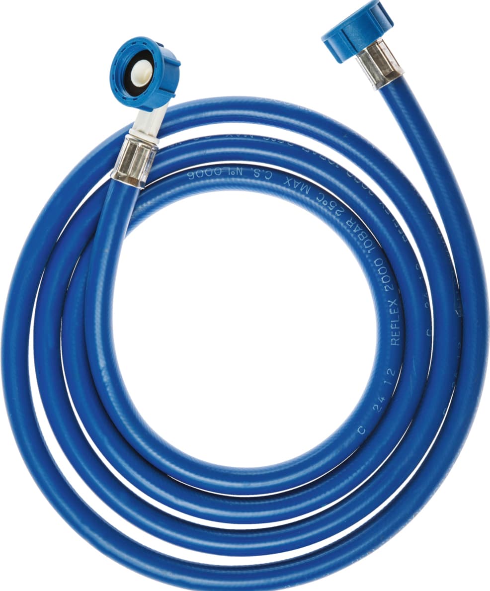 Klassisk indløbsslange med koblinger til vaskemaskiner, vask/tør maskiner og opvaskemaskiner. Indeholder 1 stk. Lige/kroget 2,5 m Universal.Læs mere om produktet