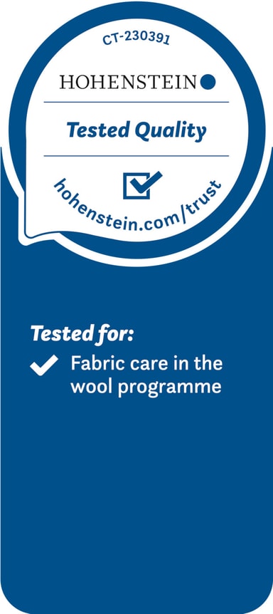 Den uafhængige testorganisation Hohenstein bekræfter, at kombinationen af Miele UltraPhase All in Two og uldprogrammet i W2 Nova Edition er særligt skånsom mod sarte tekstiler. Det innovative og unikke system tilbyder tekstilpleje, der kan sammenlignes med velkendte specialvaskemidler til uld og silke. Giv dit sarte tøj den pleje, det fortjener!