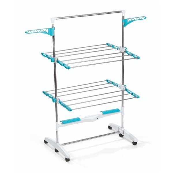 Tør dit tøj på ingen tid med dette elektriske tørrestativ. Takket være de 12 aluminiumsstænger giver tørrestativet tilstrækkelig med plads for at hænge flere stykker tøj op samtidig. Specielt håndteres sarte stoffer meget varsomt. Dette tørrestativ tørrer din vask dobbelt så hurtigt som andre tørrestativer, er sammenfoldeligt og ekstremt let. Tørrestativet kan derfor også gemmes væk for at spare plads. Desuden kan du let flytte stativet, takket være hjulene i bunden.